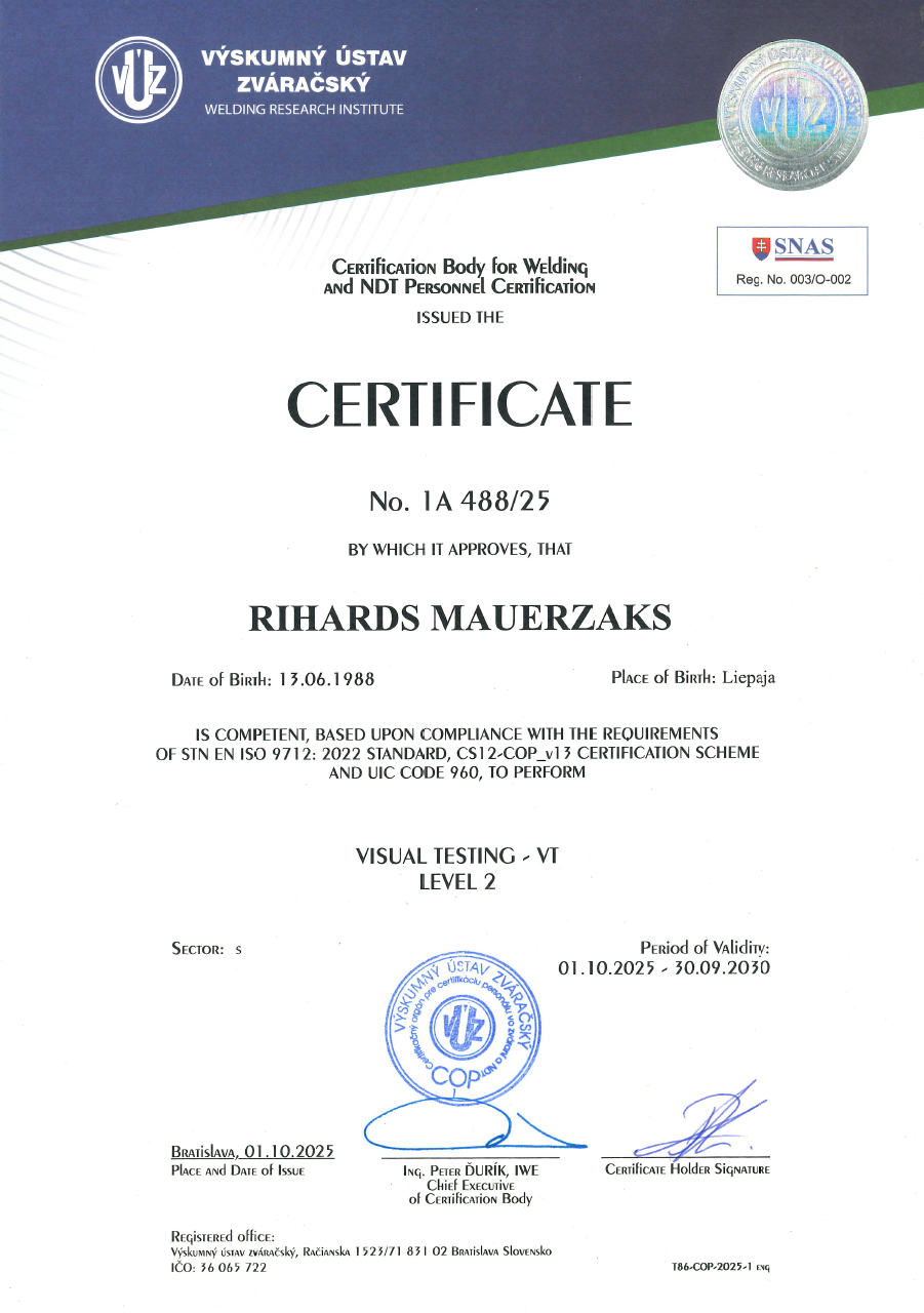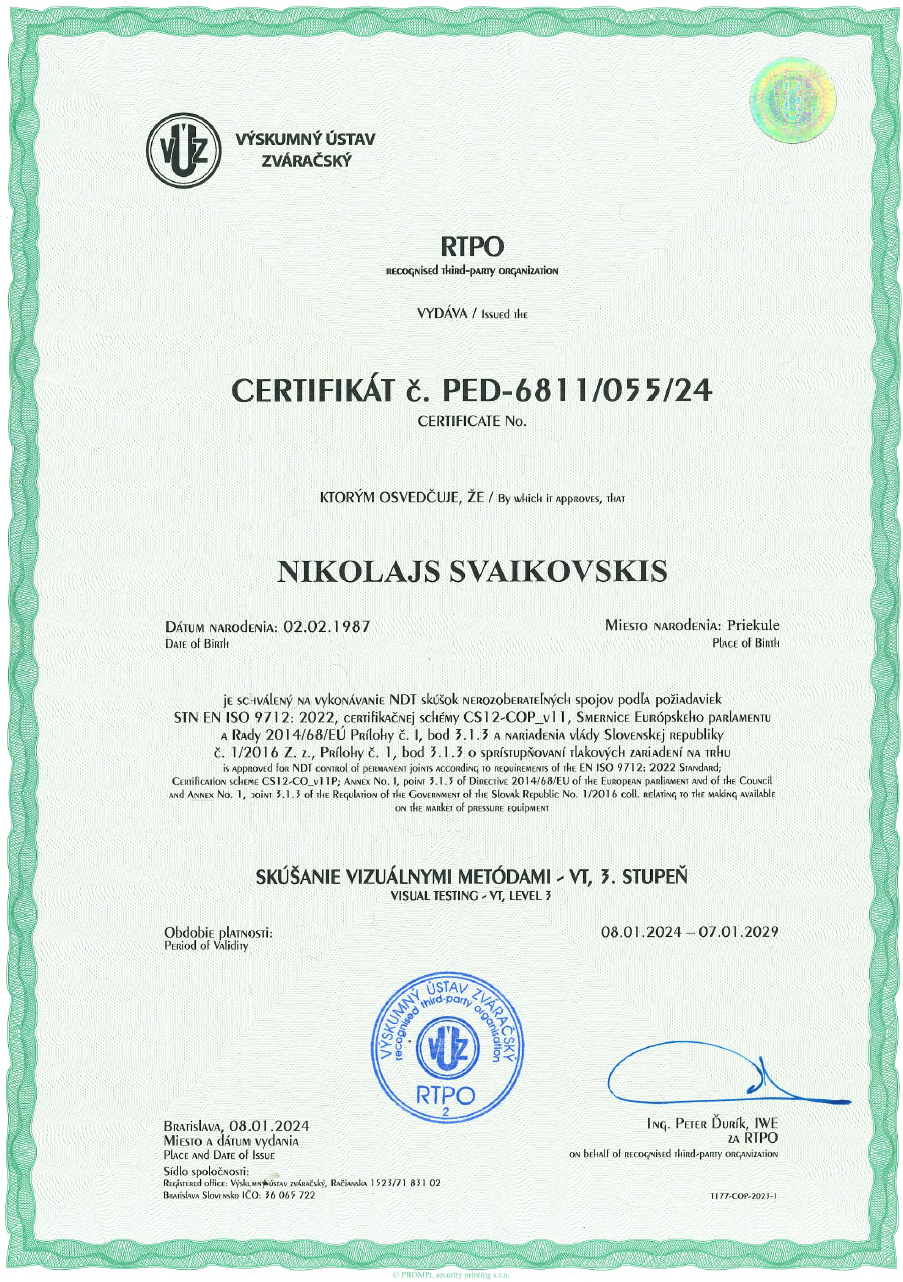 - Visi metinātāji sertificēti EN ISO 9606-1